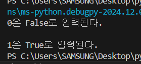 | 자료형 | 참 | 거짓 |