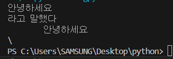 큰 따옴표나 작은따옴표 3개를 붙이고 내용을 가운데 적으면 그 사이에 내용을 모두 문자열로 만들 수 있다.