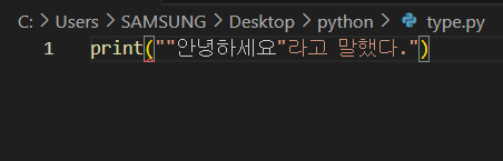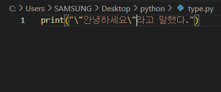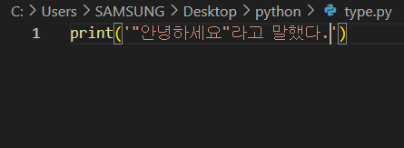 print(""안녕하세요"라고 말했다.")