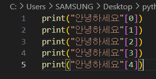 문자열 선택 연산자(인덱싱) [ ]