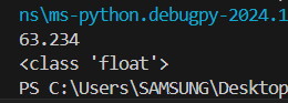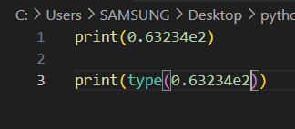 파이썬에서는 0.63234 x 10²을 0.63234e2, 0.63234E2로 쓴다.